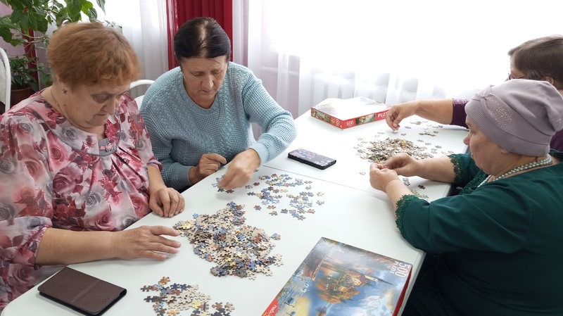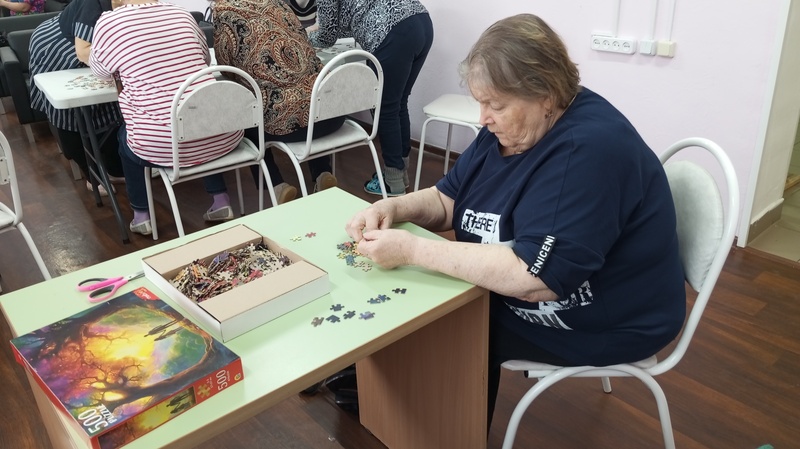 Наши обслуживаемые с увлечением собирали пазлы и помогали друг другу, и с пользой провели время. Пазлы – это замечательное занятие как для детей, так и для взрослых. Сейчас существует большой выбор развивающих пазлов. С помощью этих головоломок можно познавать любую науку в игровой форме. Все любят собирать пазлы, а в большой компании это вдвойне интересней.