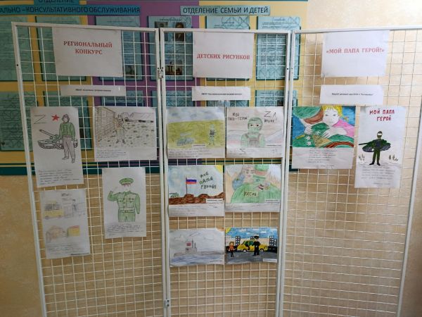В ГБУ КЦСОН Спасского м.о. проходит выставка детского рисунка «Мой папа герой» в рамках городского конкурса социальных проектов" Открытый Нижний", организованной сообществом «ОТЦЫ РОССИИ» ВОД по Нижегородской области.